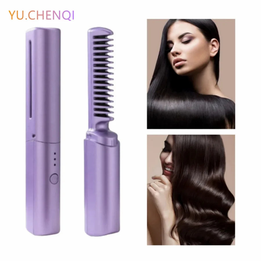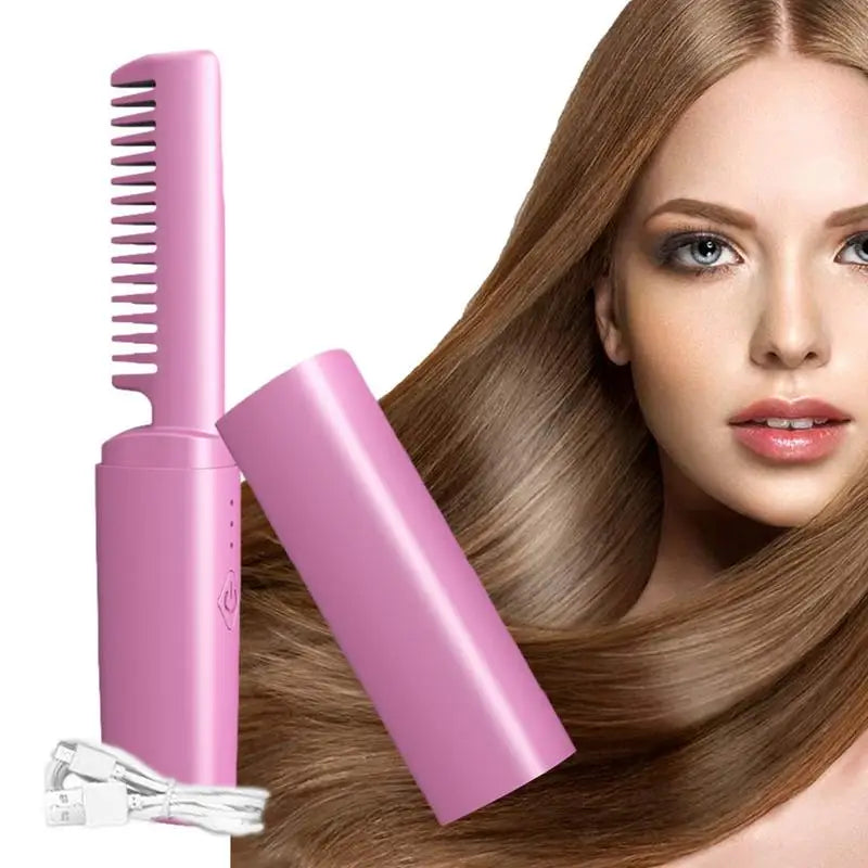 MINI PEINE ALISADOR PORTATIL 200° Mini alisador de pelo inalámbrico, peine alisador eléctrico, cepillo y rizador de pelo antiquemaduras 2 en 1. ✅Protege tu cabello✅Desenrreda mientras planchas✅200° 😱😱✅Inalámbrico✅Llévalo a todos lados Material: metal.