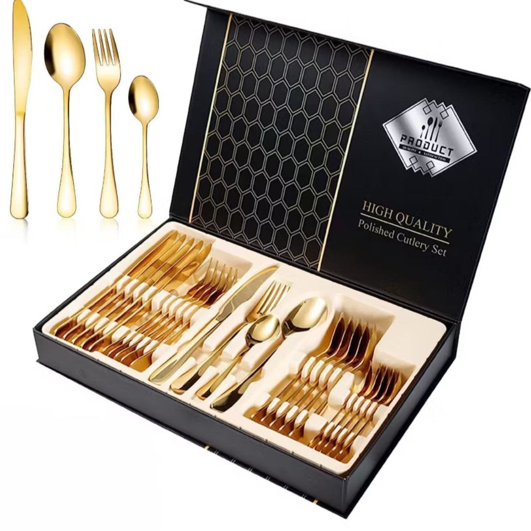 SET DE CUBIERTOS DORADOS